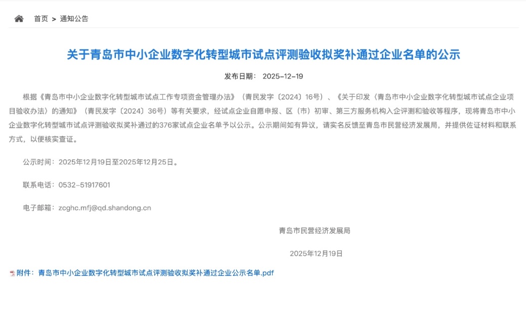 2025年12月19日海岩入选“青岛市中小企业数字化标杆”,这份认可,是对每一位海岩人并肩耕耘的回应。